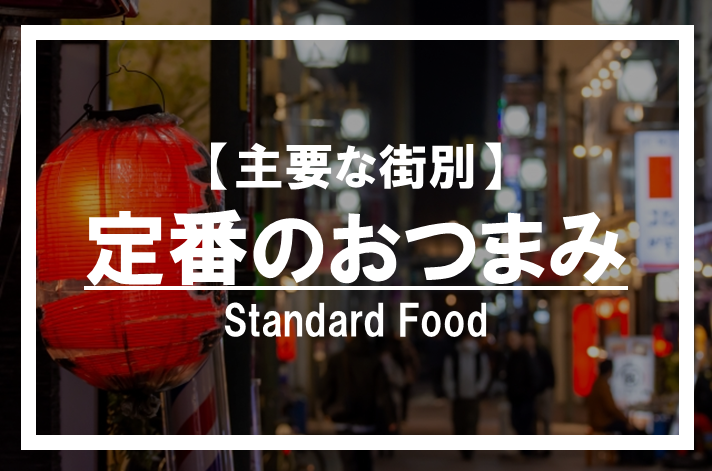 それぞれの街ごとで楽しむお酒の傾向が異なります。ここではエリア別にそれぞれの街の定番のおつまみをご紹介いたします。