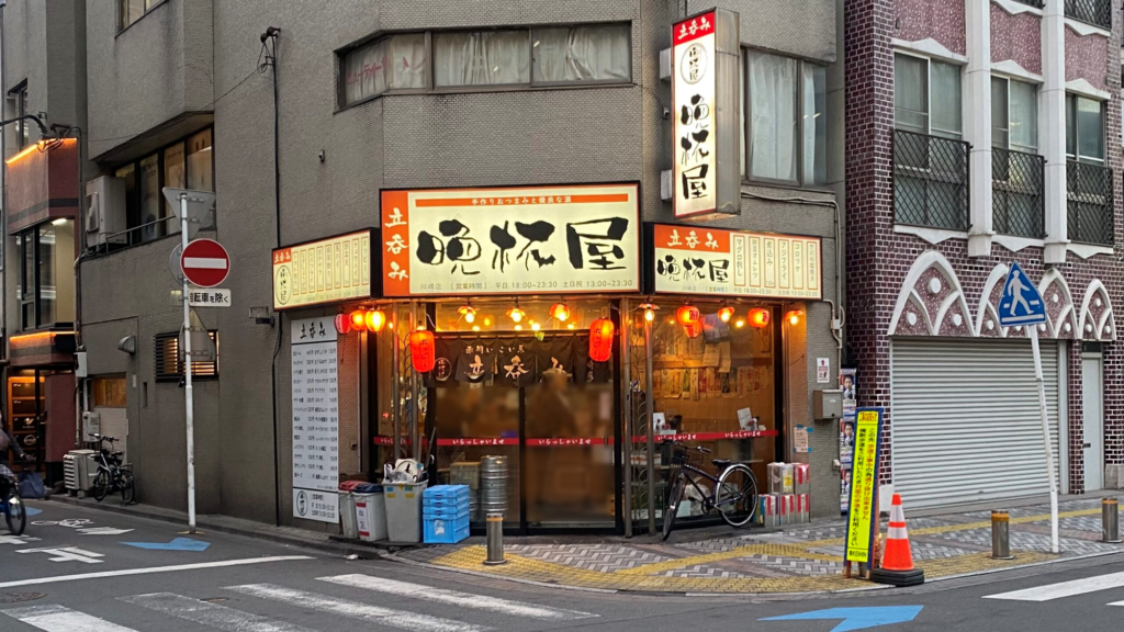 京急川崎駅駅から少し歩いた位置にある立ち飲み屋さん。昼呑みも可能な立ち飲み屋でいつもにぎわっているイメージがあります。お酒もおつまみも安く、サクッと飲むのに最適です。