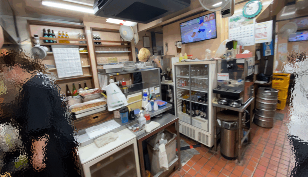 入口すぐの立ち飲みスペースの写真は撮り忘れてしまいましたが、この厨房横の席だと注文しやすく少し店員さんともお話しできたりもするのでおすすめの立ち飲み席です。
