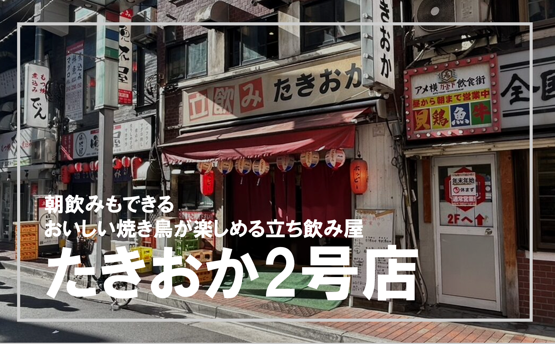 今回は御徒町にある朝呑みもできるおいしい焼き鳥が楽しめる立ち飲み屋「たきおか2号店」紹介をご紹介いたします。