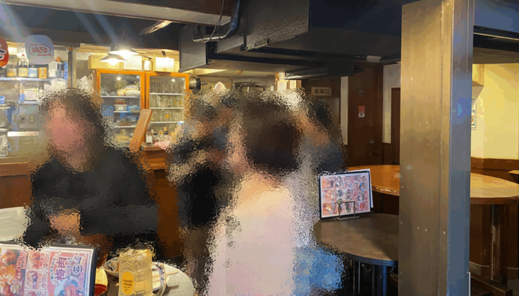 店内の立ち飲み席から入口の景色は上記写真のような雰囲気です。店内入はテーブル席のみで、柱付近は少し大人数でも使いやすくなっております。