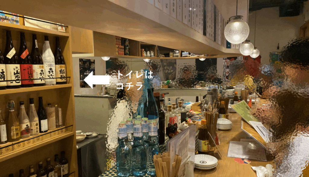 トイレにつきましては写真の通り店内奥の矢印の位置にあります。