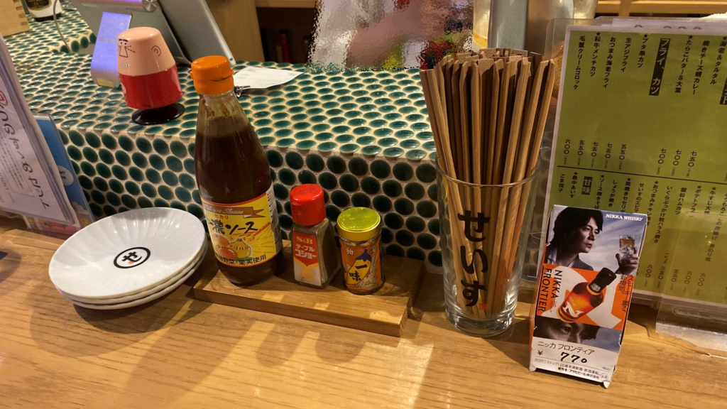「せいすスタンド」は後払い制となっており、お酒やおつまみを注文し受け取っていき、伝票をつけていただけているので最後に自分のテーブルで会計をし支払う形式になります。