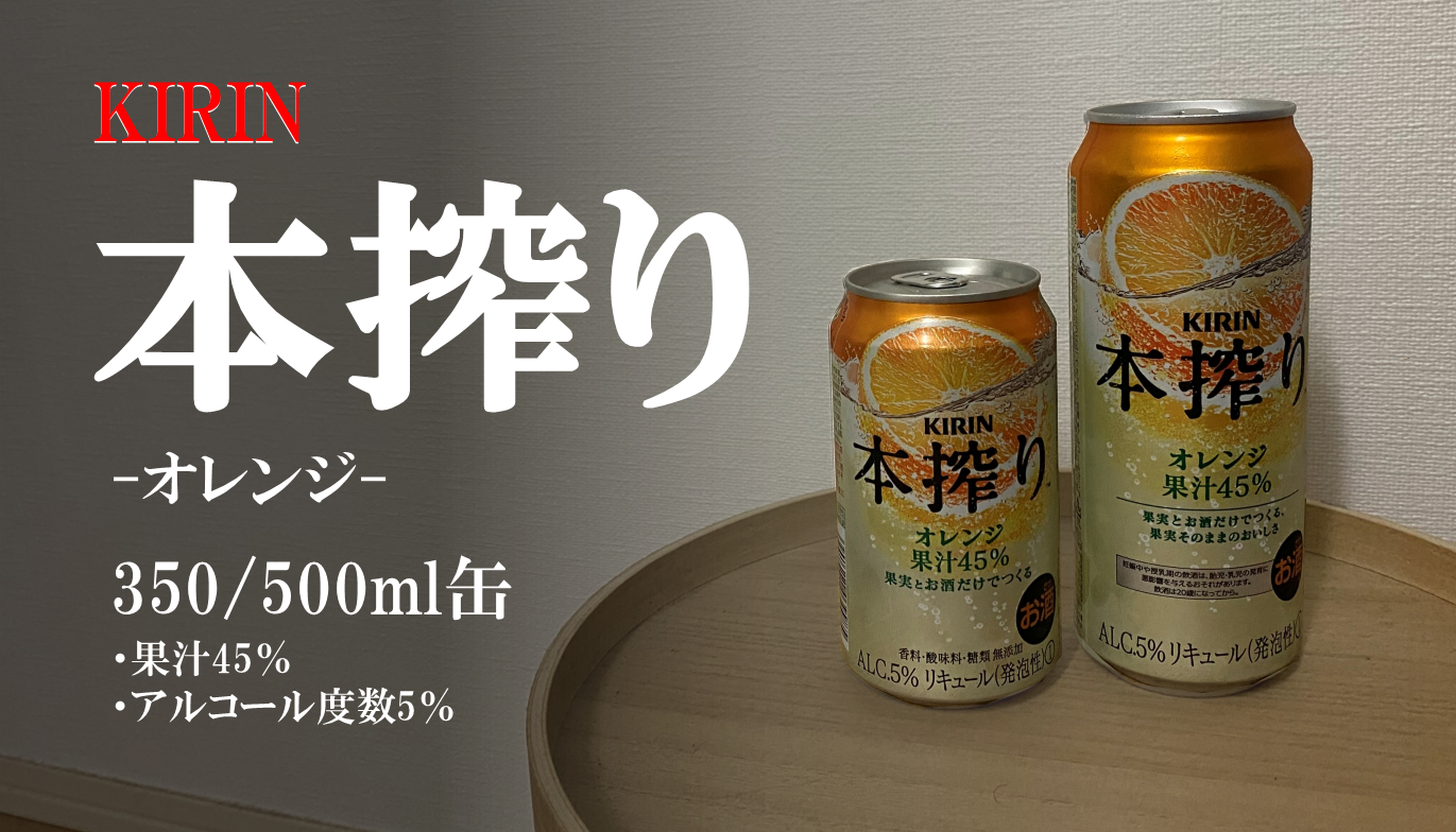 KIRINで最もオレンジの味を感じられる配合で作られているそうで果汁は45%と本搾りシリーズとしてはかなり高い数値となっており、アルコール度数は5%となっております。