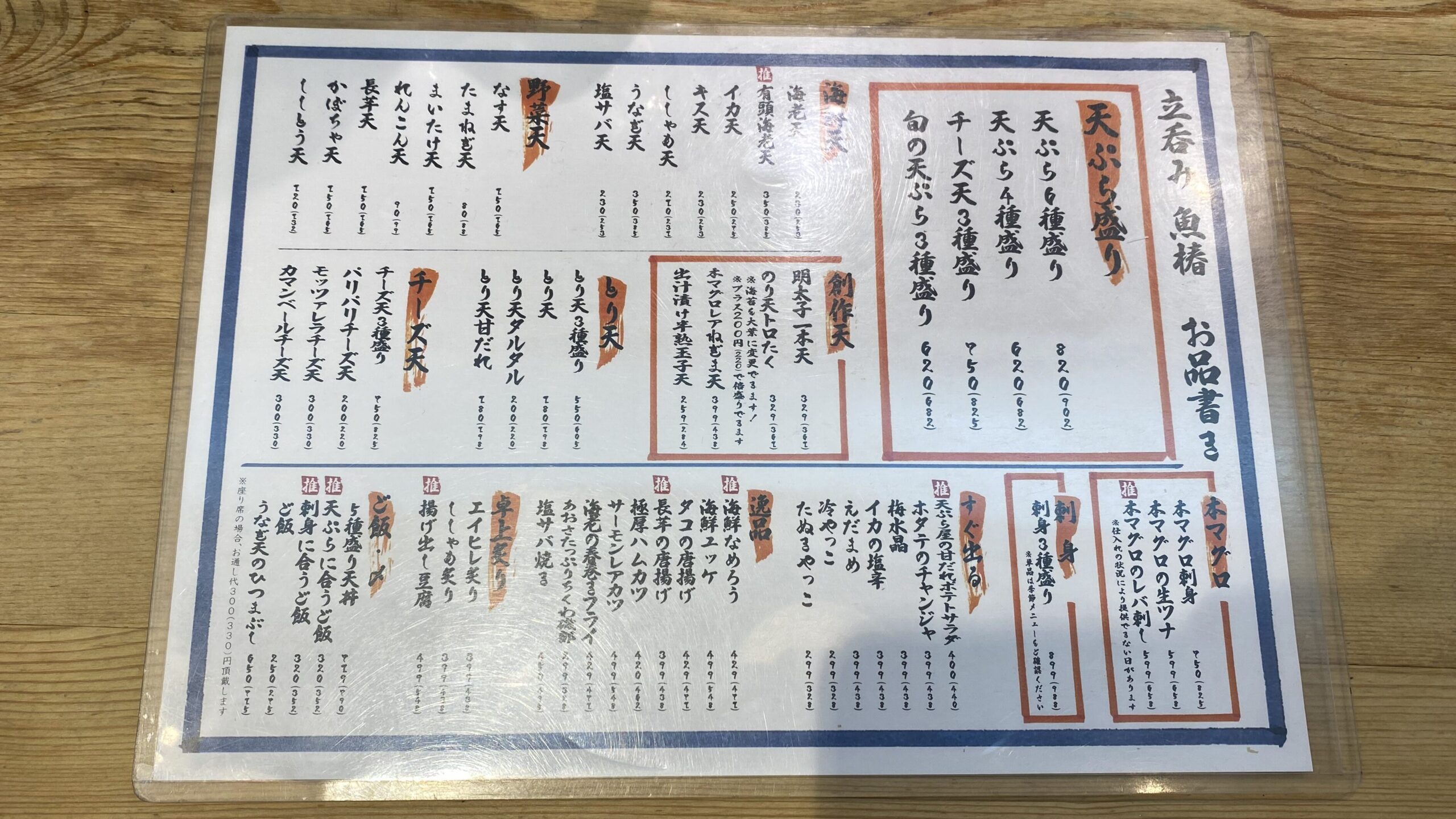 大黒グループのてんぷらとお刺身を楽しめる立ち飲み屋さん。1階がカウンターメインの立ち飲み、2階が椅子席になっております。他一品系のおつまみなども幅広くご用意されており、ついついいろいろなおつまみや天ぷらを頼みたくなってしまいます。
