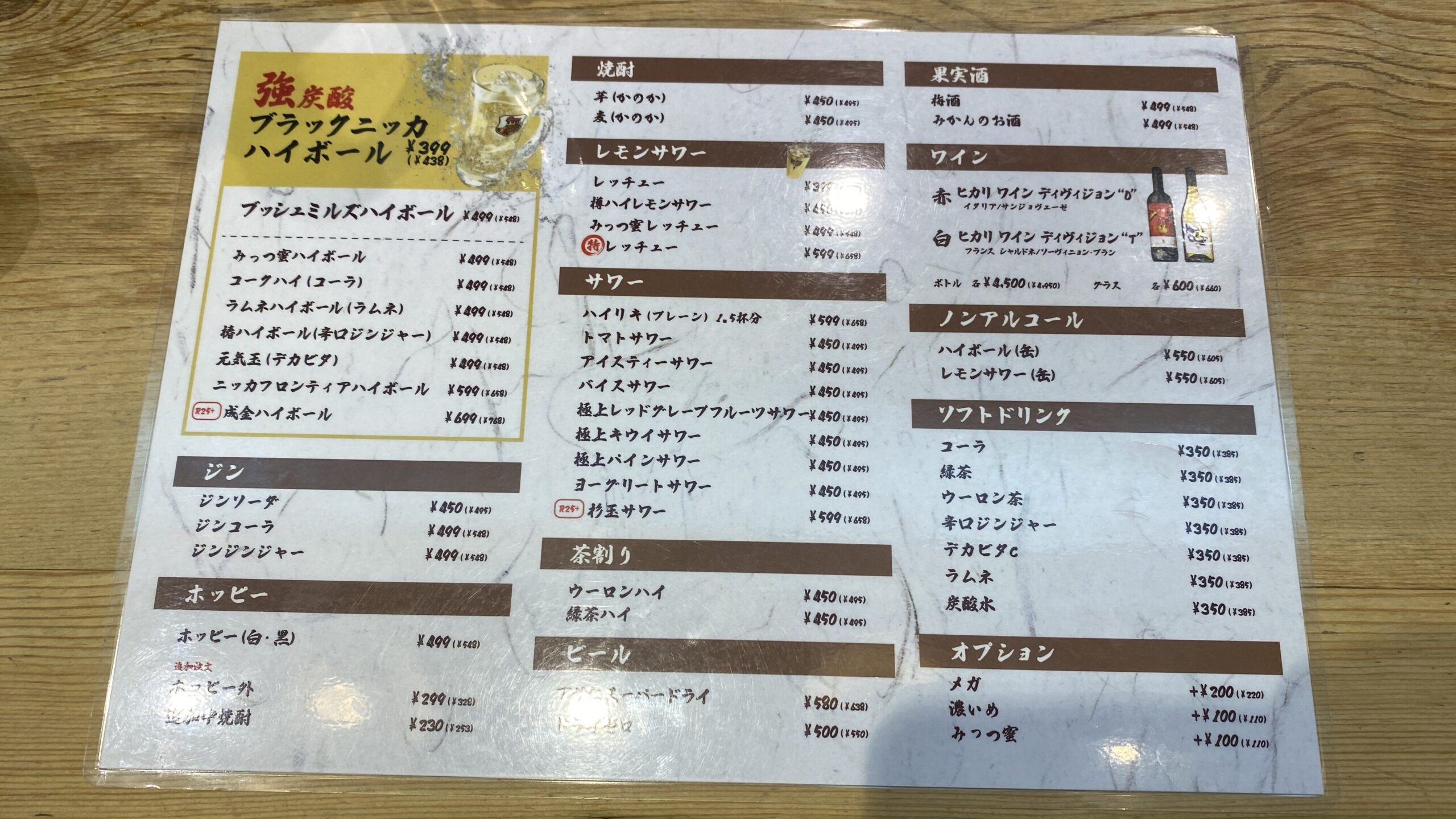 以下、写真の通り裏面には他の店舗で提供している独自メニューの一覧も確認できます。
