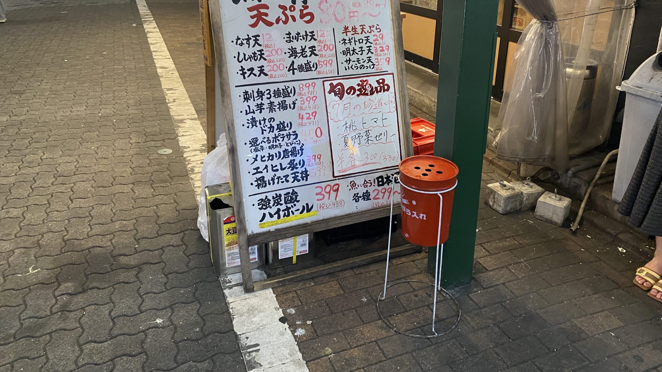 店の入り口横看板の前に上記写真のように灰皿がおかれております。