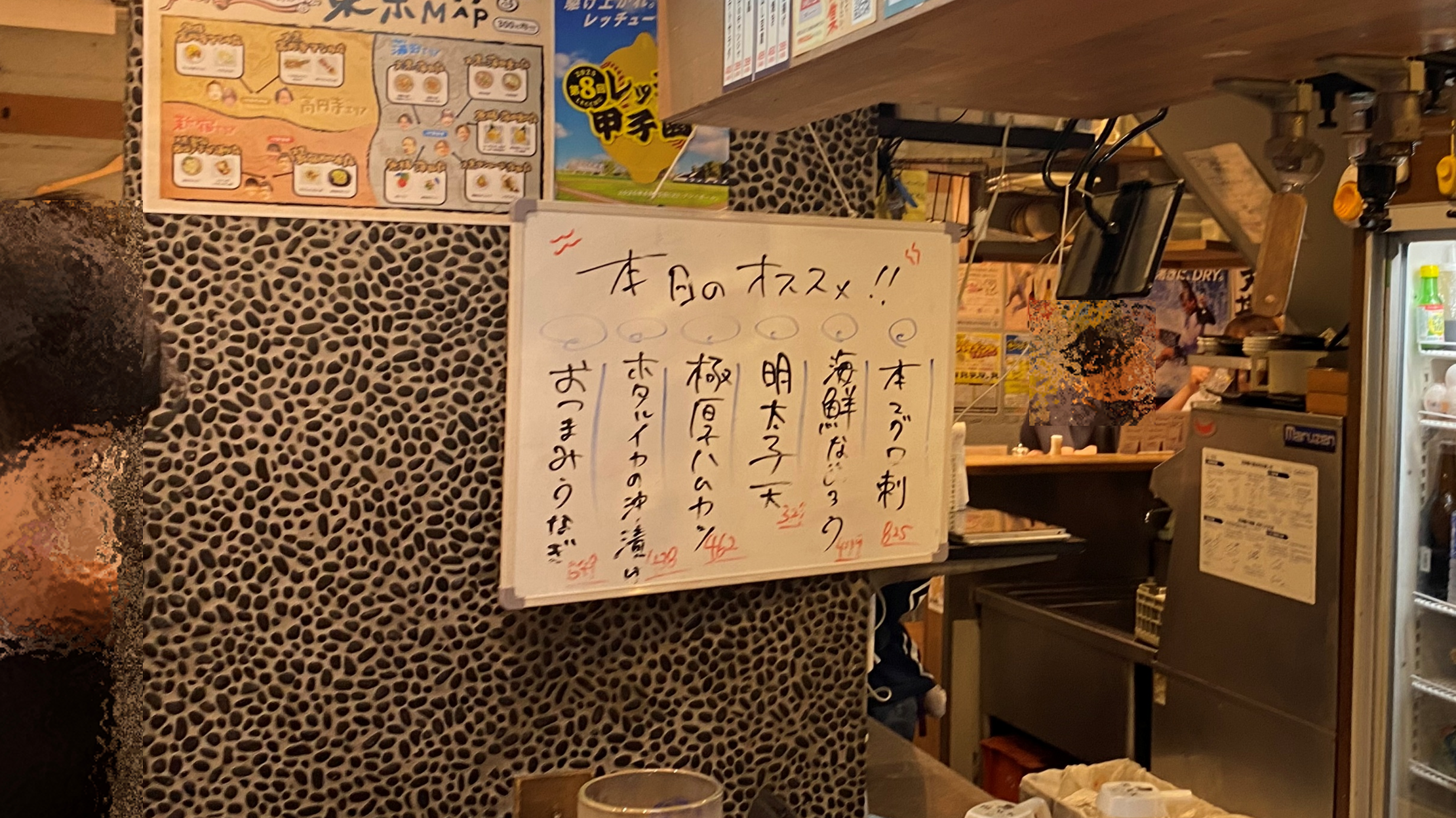 こちらは通常メニューにもあるおすすめだけではなく、その日の仕入れ状況によってご準備されているメニューも並んでおります。