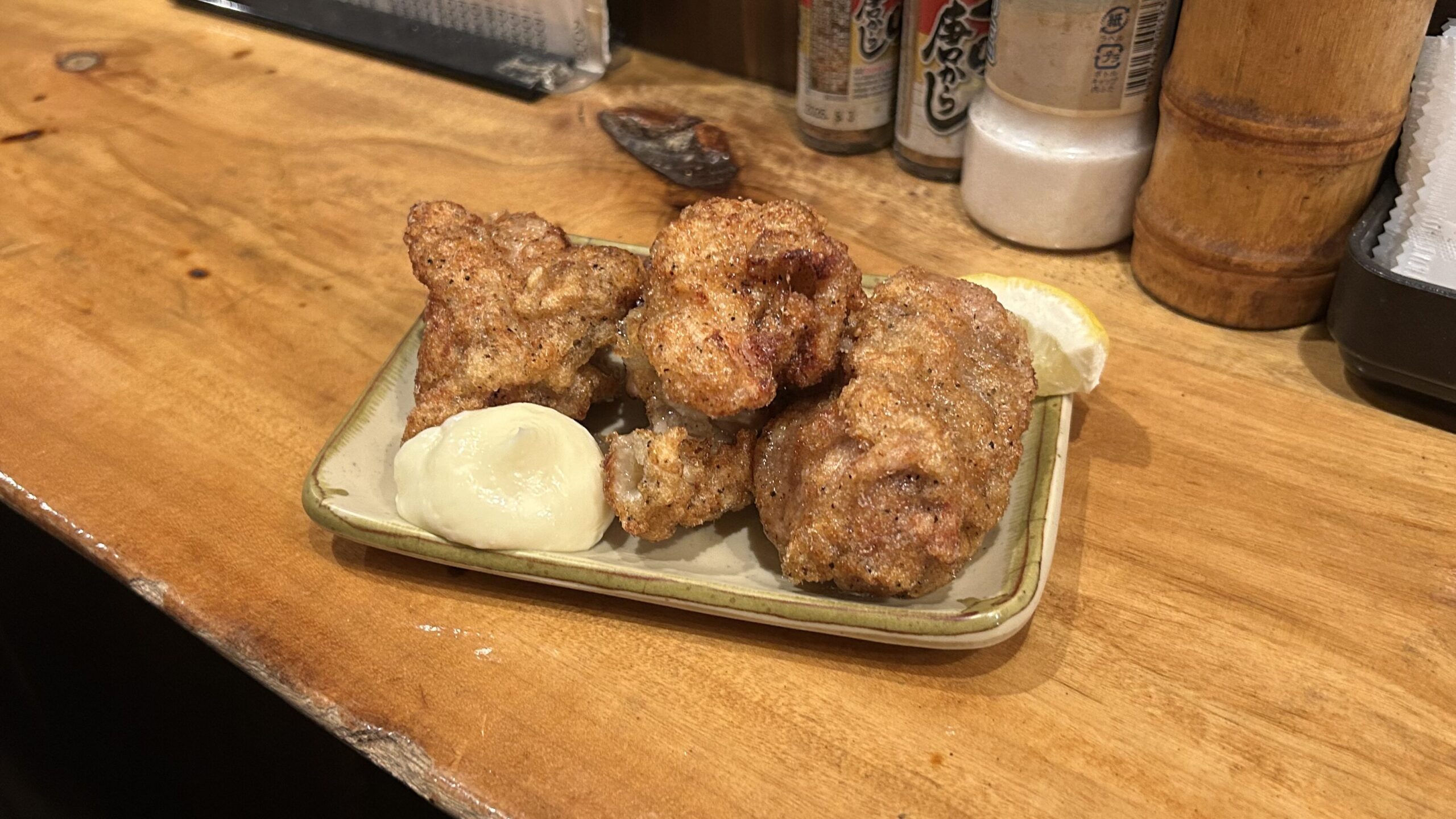 この日はおなかがすいており、がっつり系でおすすめを聞いたところ唐揚げをお勧めいただき注文しました。大きな唐揚げが4つ乗っております。非常にジューシーで揚げたてでだしていただけるのでおすすめ。
