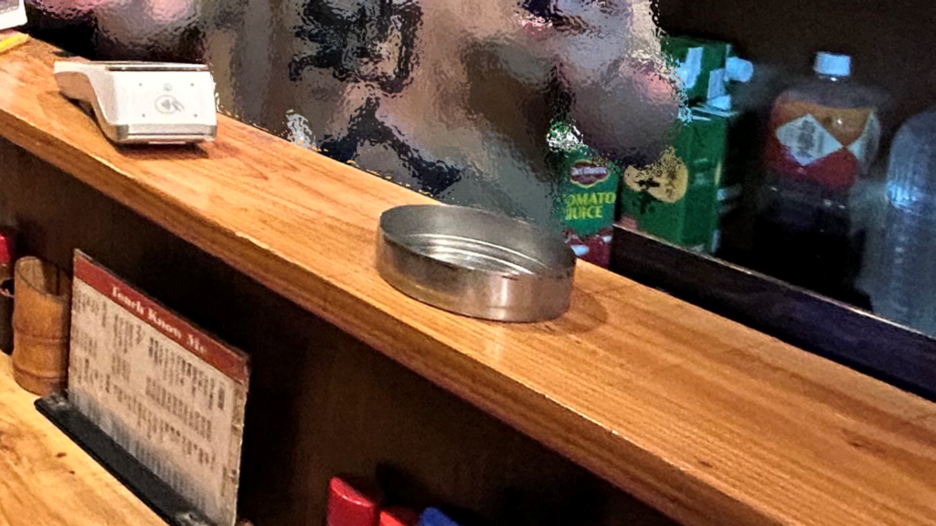 焼き鳥用の調味料としておかれているようです。そのほか、つまようじやお手拭き、割り箸もカウンター沿いに置かれております。