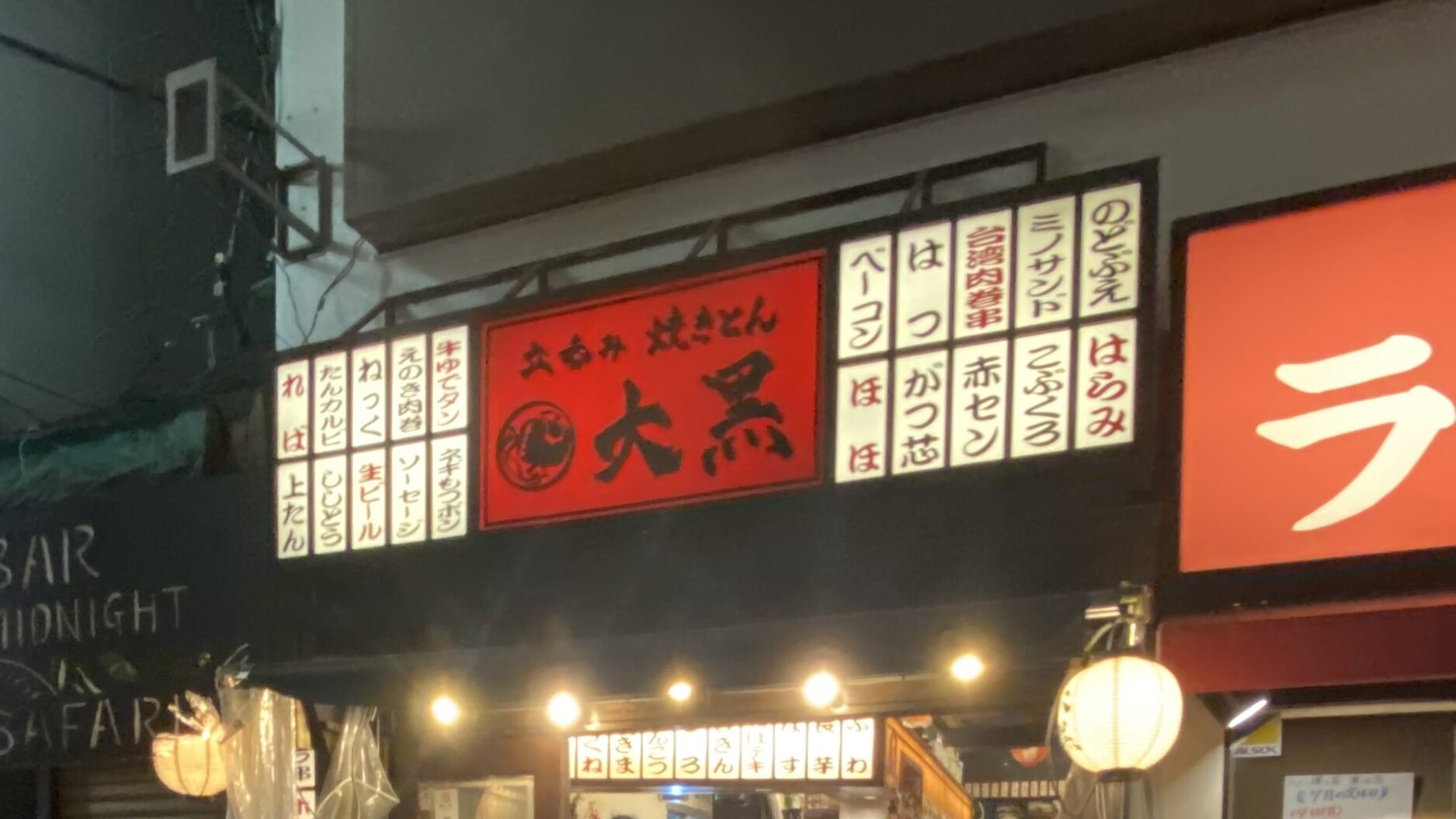 焼きとんを昼から飲める立ち飲み屋さん。蒲田には大黒が3店舗あうちの蒲田東口側の店舗です。