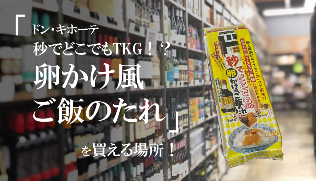 卵と醤油が無くてもこれ一つで解決!?をコンセプトにドン・キホーテから販売されております「秒でどこでもTKG!?卵かけ風ご飯のたれ」。