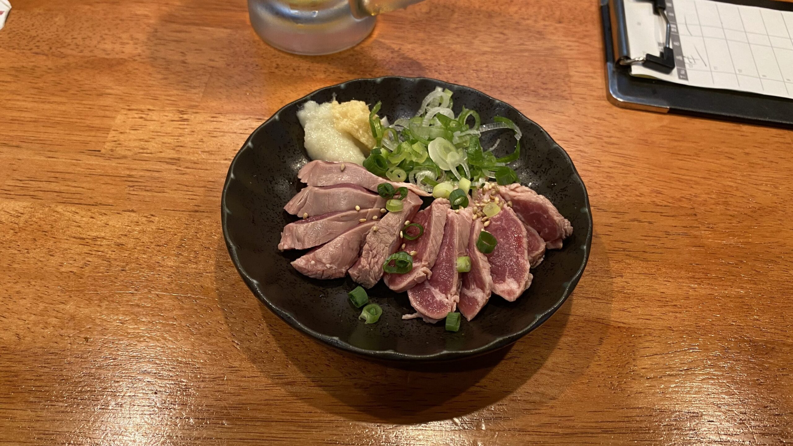低温調理されたハラミは非常に柔らかく仕上がっております。たっぷりのねぎとしょうがとニンニクが添えられており、醤油と合わせてたっぷりつけていただくのがおすすめです。