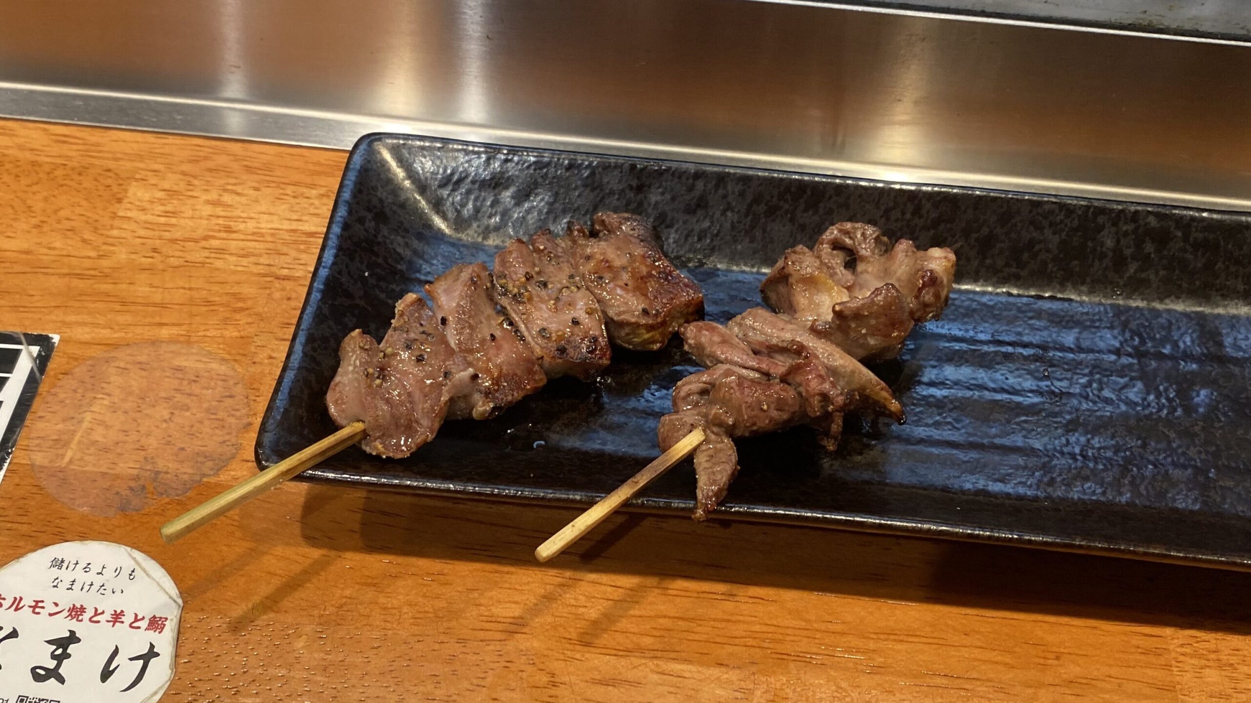 一品目は串焼きから「タン」と「ハツクズ」です。