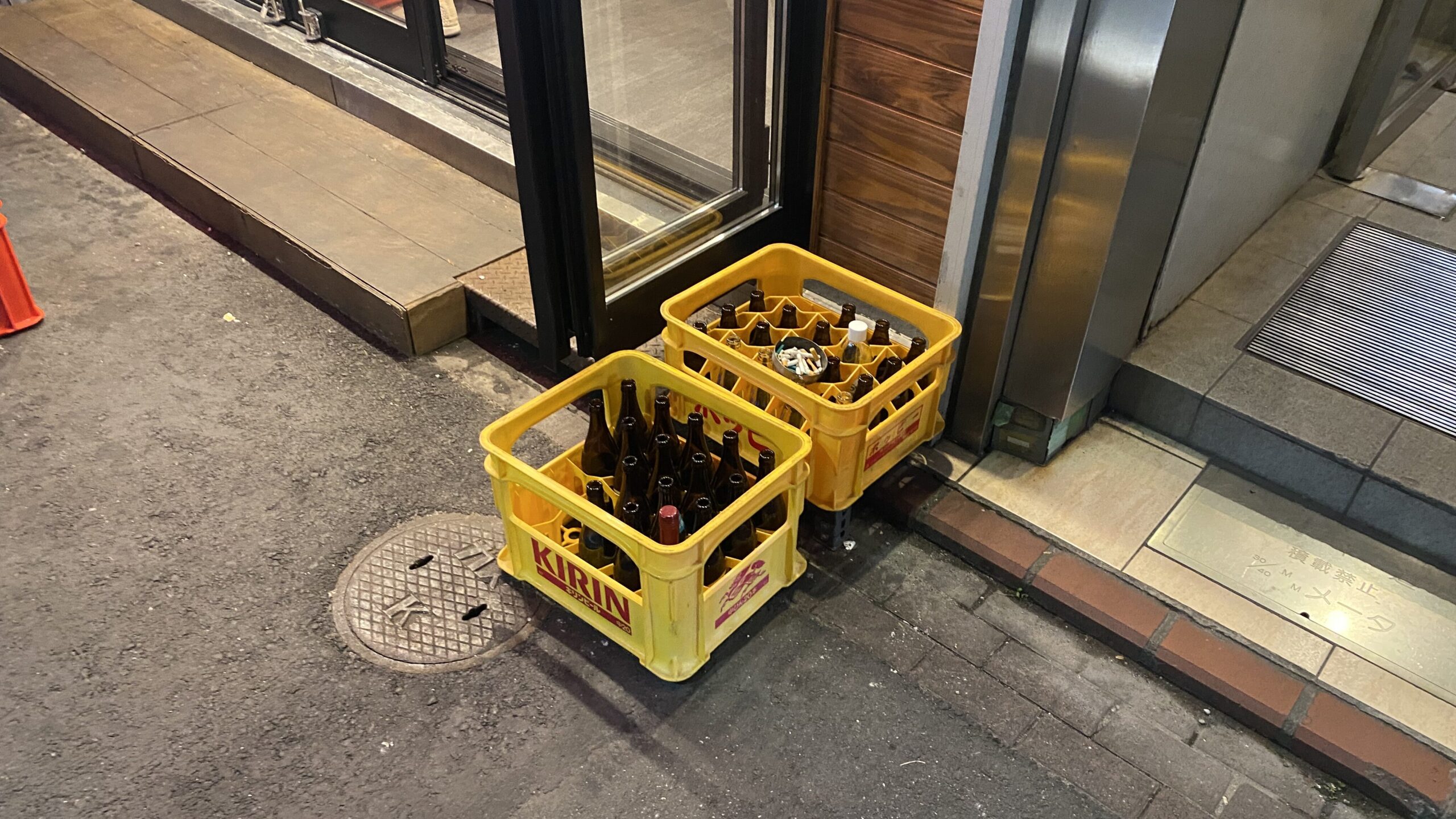 店内は禁煙となっておりますが、店横に置かれているビールケースの上に灰皿がおかれておりこちらで喫煙が可能です。