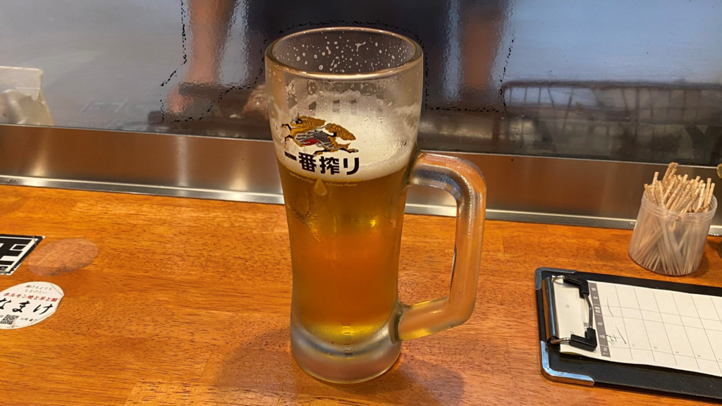 店によっては店名やロゴなど特徴のあるグラスを使われているお店もありますが、「もつ焼き次郎」ではロゴの入ったグラスは使われておりません。